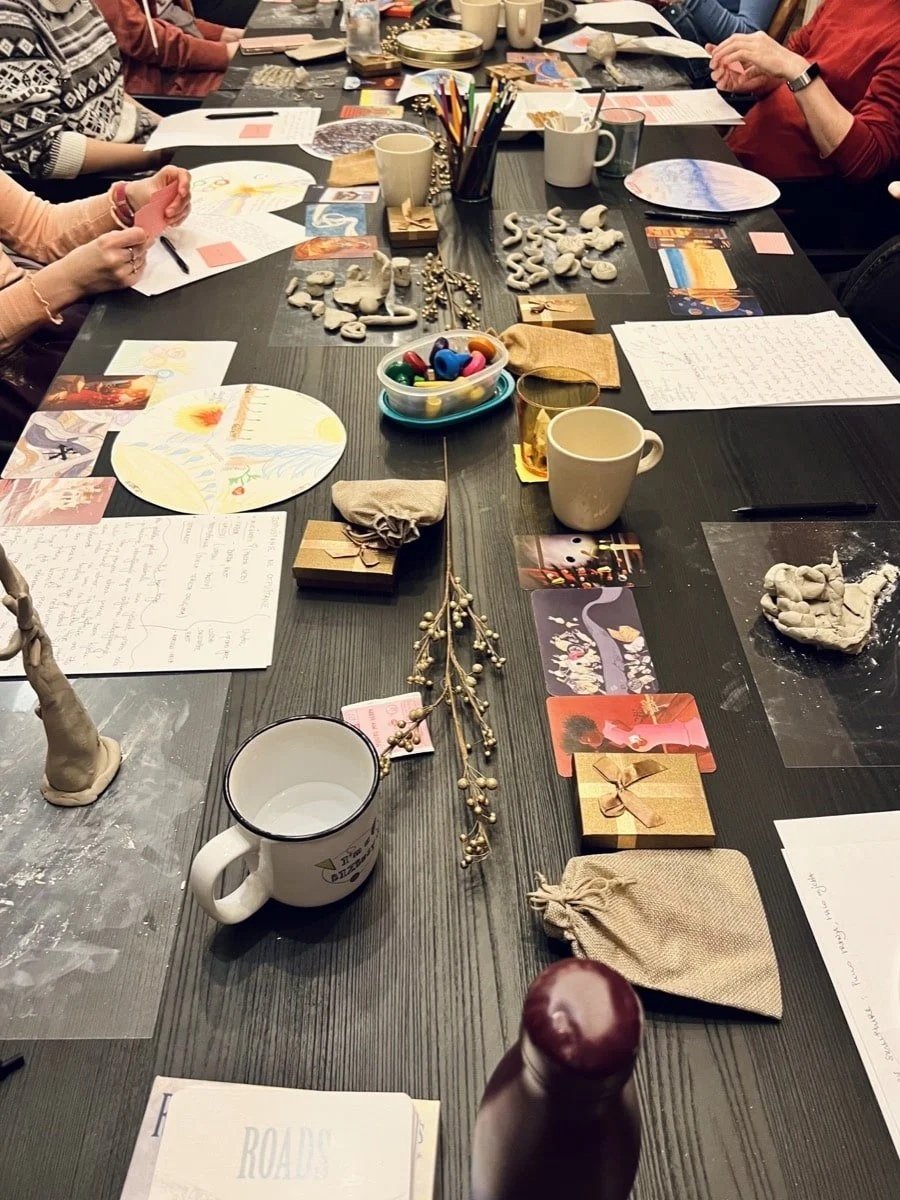 You’ll be guided through a mix of simple, hands-on activities using words, different materials, and gentle prompts to explore what’s been hard, what’s mattered, and what you want to carry forward. There’s space for quiet reflection as well as (always optional, completely pressure-free) sharing with the group.